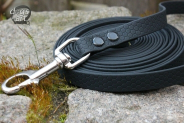 This leash is 16 mm wide (approx. 5/8"). Load capacity 180 kg (396 lbs.)